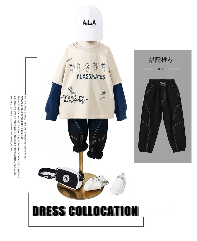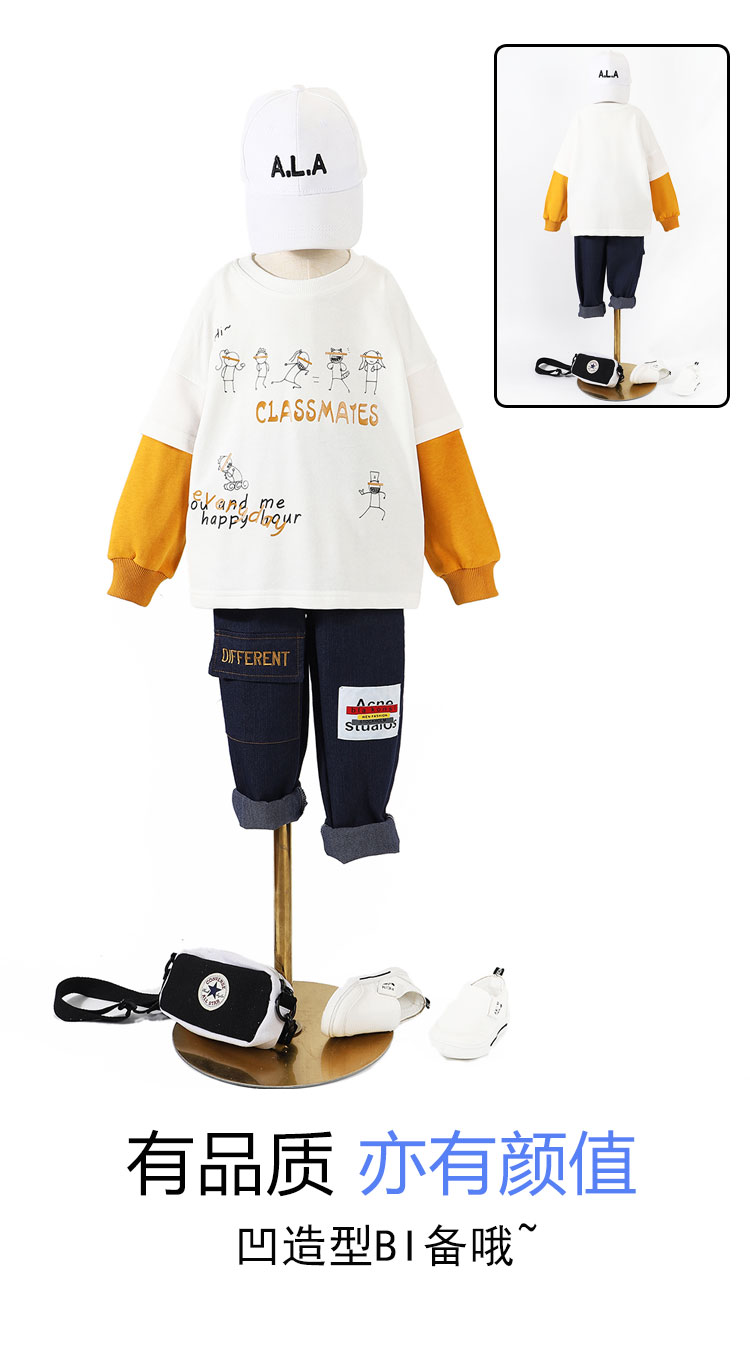 浪莎童裝男童衛(wèi)衣兒童春秋款長袖2021新款中大童打底衫韓版潮t恤