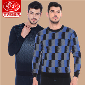 浪莎時(shí)尚加絨加厚保暖內(nèi)衣套裝男士中年格子秋衣秋褲冬季打底防寒