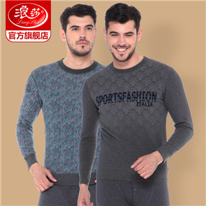 浪莎條紋個(gè)性保暖內(nèi)衣男士加厚加絨中老年人爸爸冬季秋衣秋褲套裝