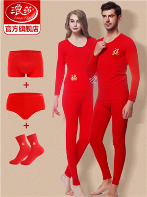 浪莎本命年紅色內(nèi)衣內(nèi)褲襪子結(jié)婚禮物屬牛秋衣秋褲男女士保暖套裝